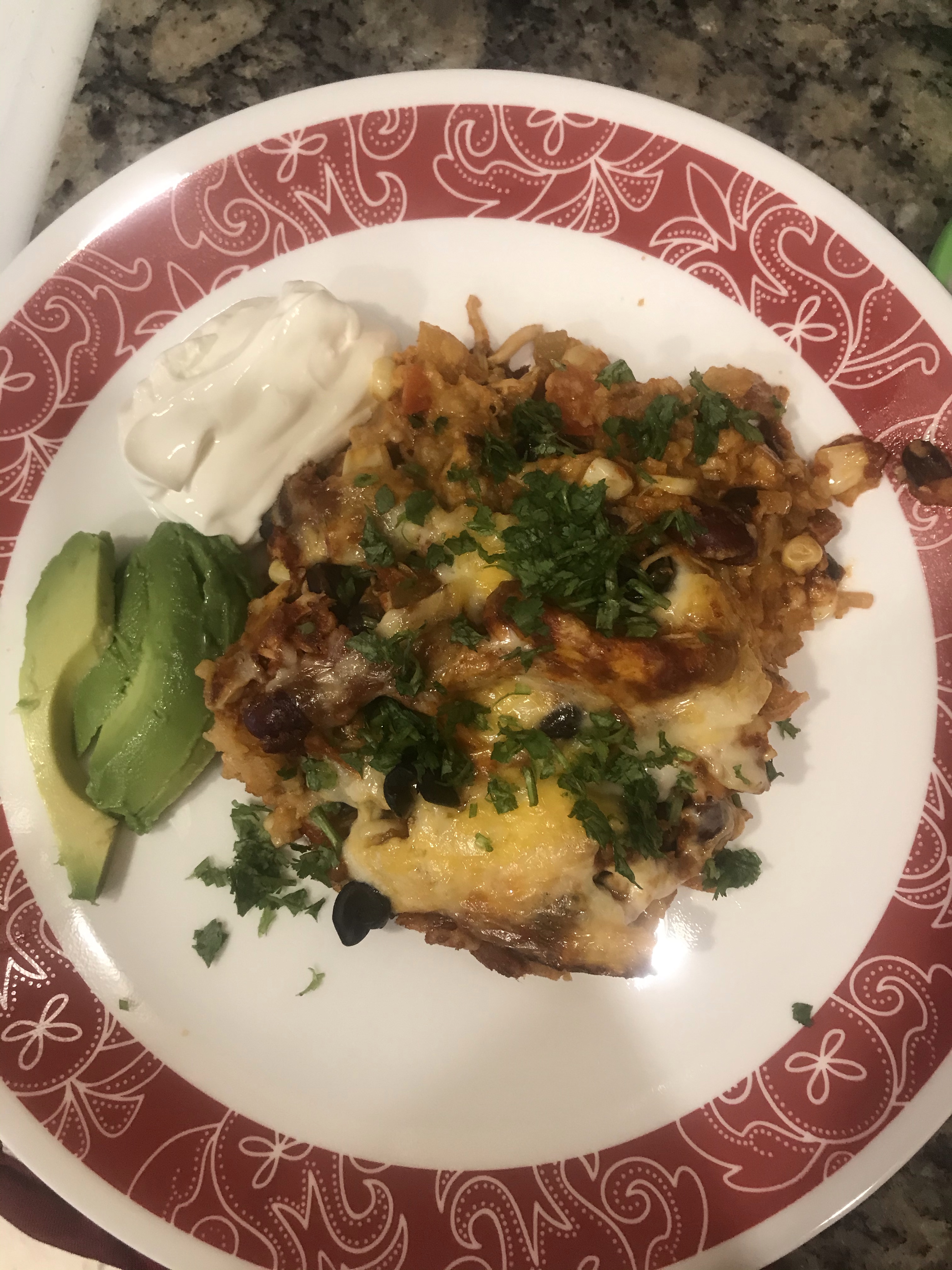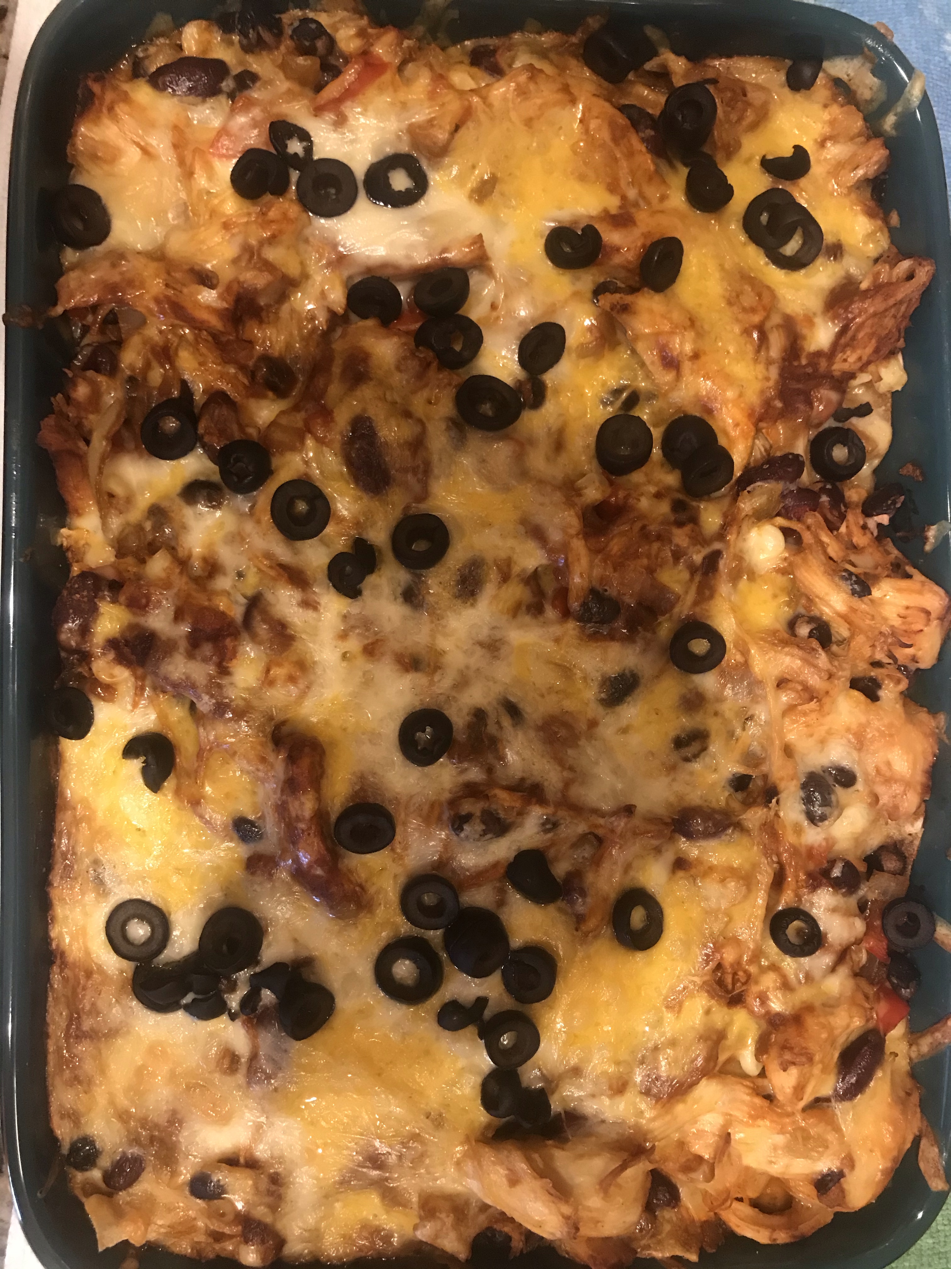 I’ve seen this kind of dish called enchilada casserole, but it’s really just more of a southwestern style dish and not very enchilada like.