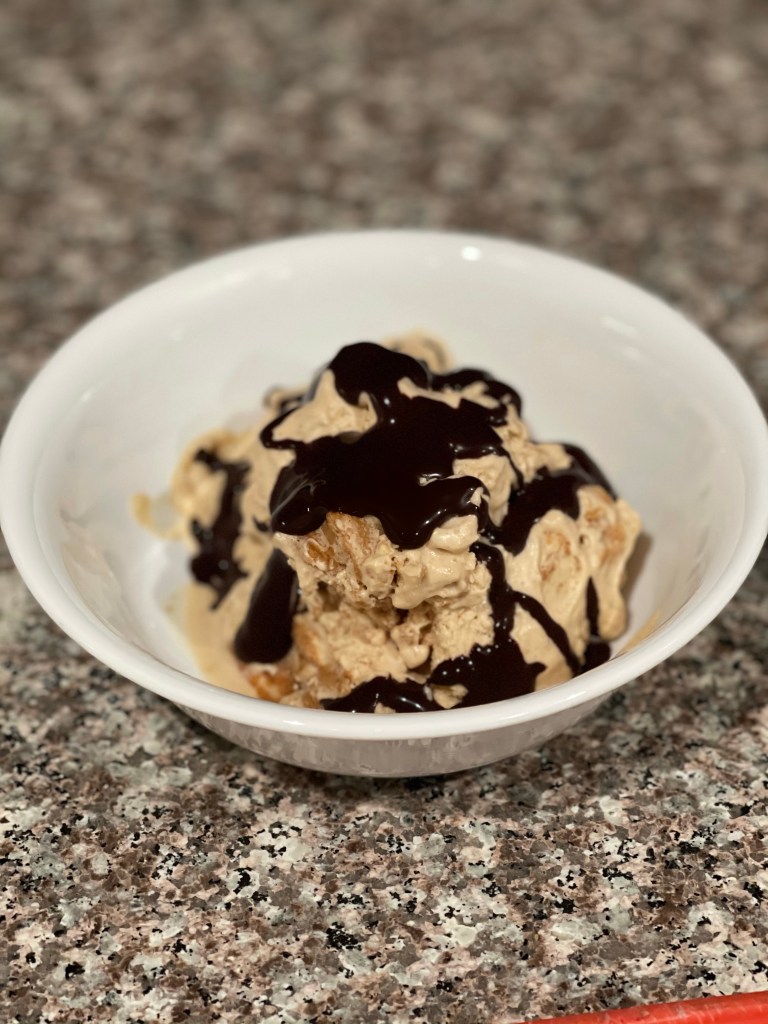 I forgot to take a glamor shot of the ice cream, so this is from the last bit left in the container. I’ll have to replace the picture later.