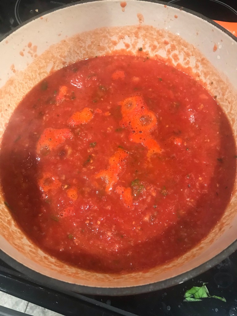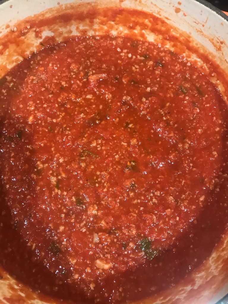 6. As 16oz of tomato sauce and simmer another 15.