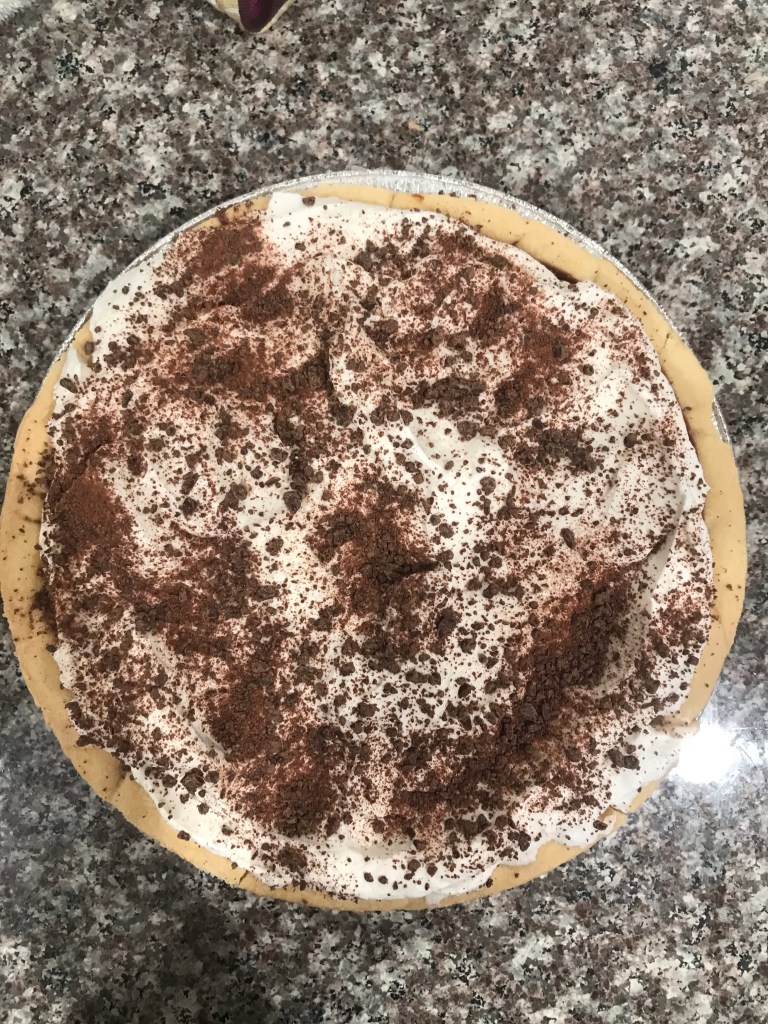 I totally neglect to take pictures of my cooking, so I will update this post later with pics of the different steps. I make it a lot. The pudding holds its shape very well when slicing, and it’s pretty easy to make. I made this for Father’s Day because it’s my husband’s favorite. I made chocolate curls the first few times, but the chocolate dust is just way easier.