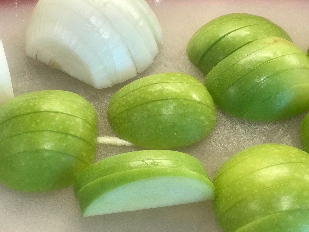 This is a dish I don’t think needs a recipe. Slice up apples and onions. Cook in butter until they look good. Eat. It’s also a dish I thought everyone knew about, but it isn’t.
